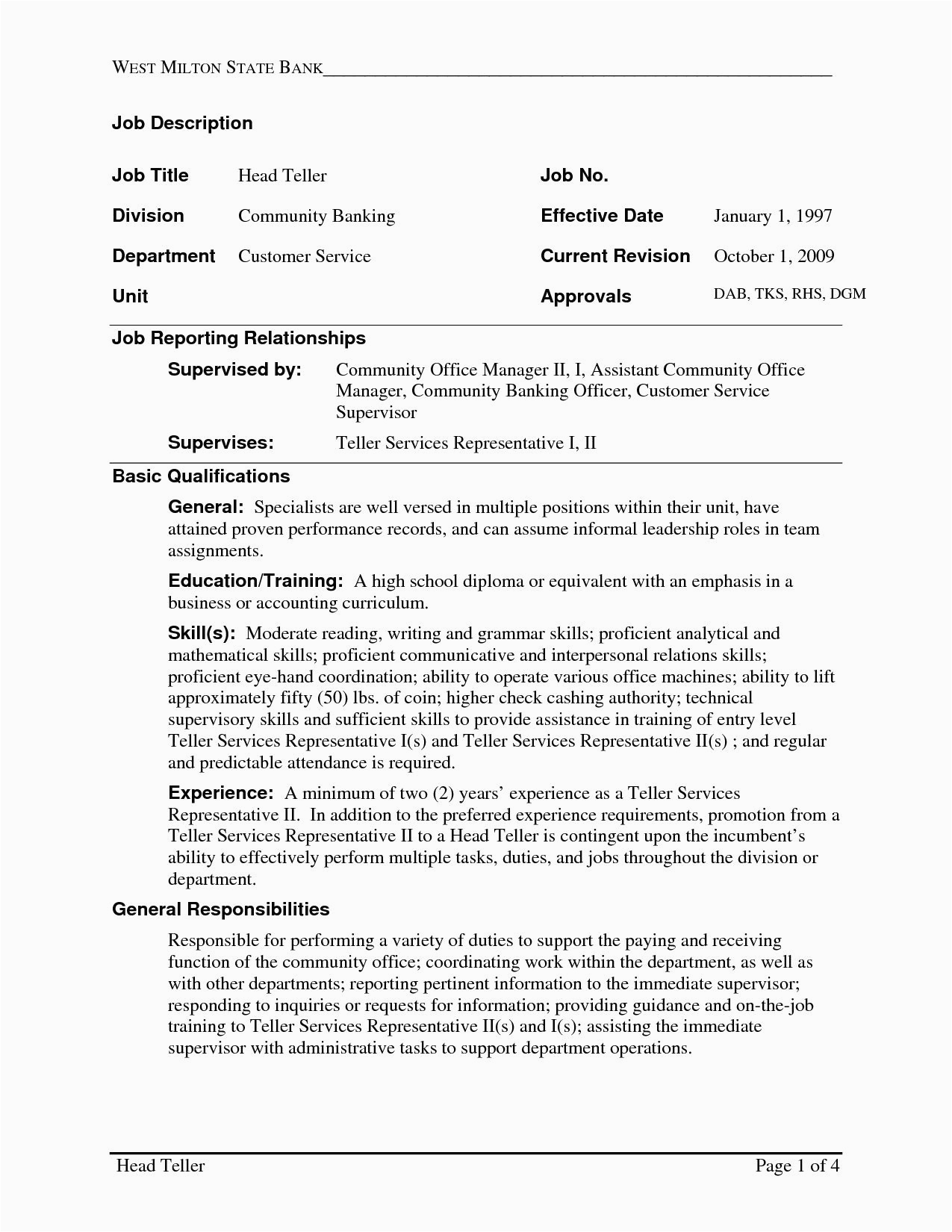 Sample Resume For Bank Teller Position No Experience