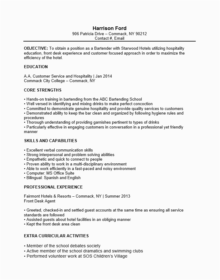 And for all website you arrive across that has a bartending resume samples with no experience, you will find that there are specialized templates for just nearly any type of resume you hope to create. You can locate a bartending resume samples with no experience for an entry-level position, and you can locate a template for just nearly any type of job or career you are looking for.