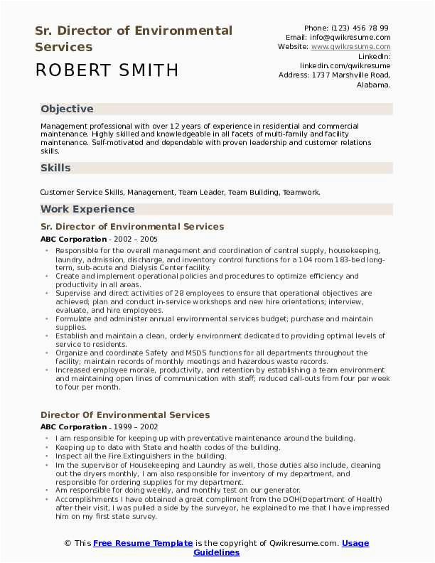 There are so many options for you as you search for the absolute director of environmental services resume sample, and subsequently some hard piece of legislation and perseverance on your part, you will locate yourself taking into consideration a first-class resume in no time, and hopefully, a first-class employer, as well!. For more assistance on resumes or for a director of environmental services resume sample checkout this recommended websites.