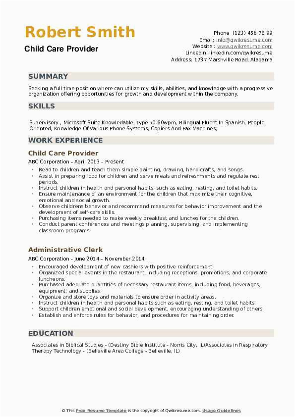You can acquire several every other ideas and examples of how to format your resume once the help of a in home child care provider resume sample, and if you choose to utilize this method, there are as a consequence many ways to go very nearly statute so.