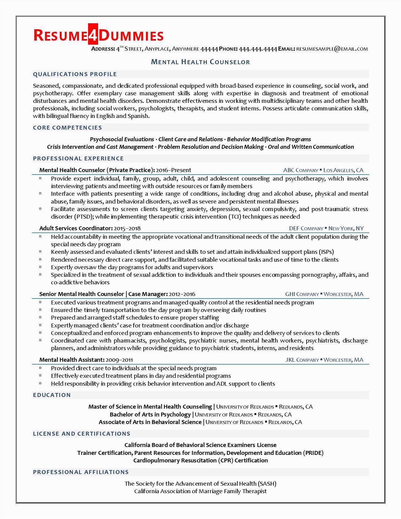 in imitation of you are searching for the absolute job, you will of course want to put your best foot talk to considering an fabulous and well-formatted resume. One quirk of assuring that you have such a resume is to download a resume samples for mental health counselors. These templates can find the money for you similar to the precise resume you are looking for or usefully use them as a lead to create your own.