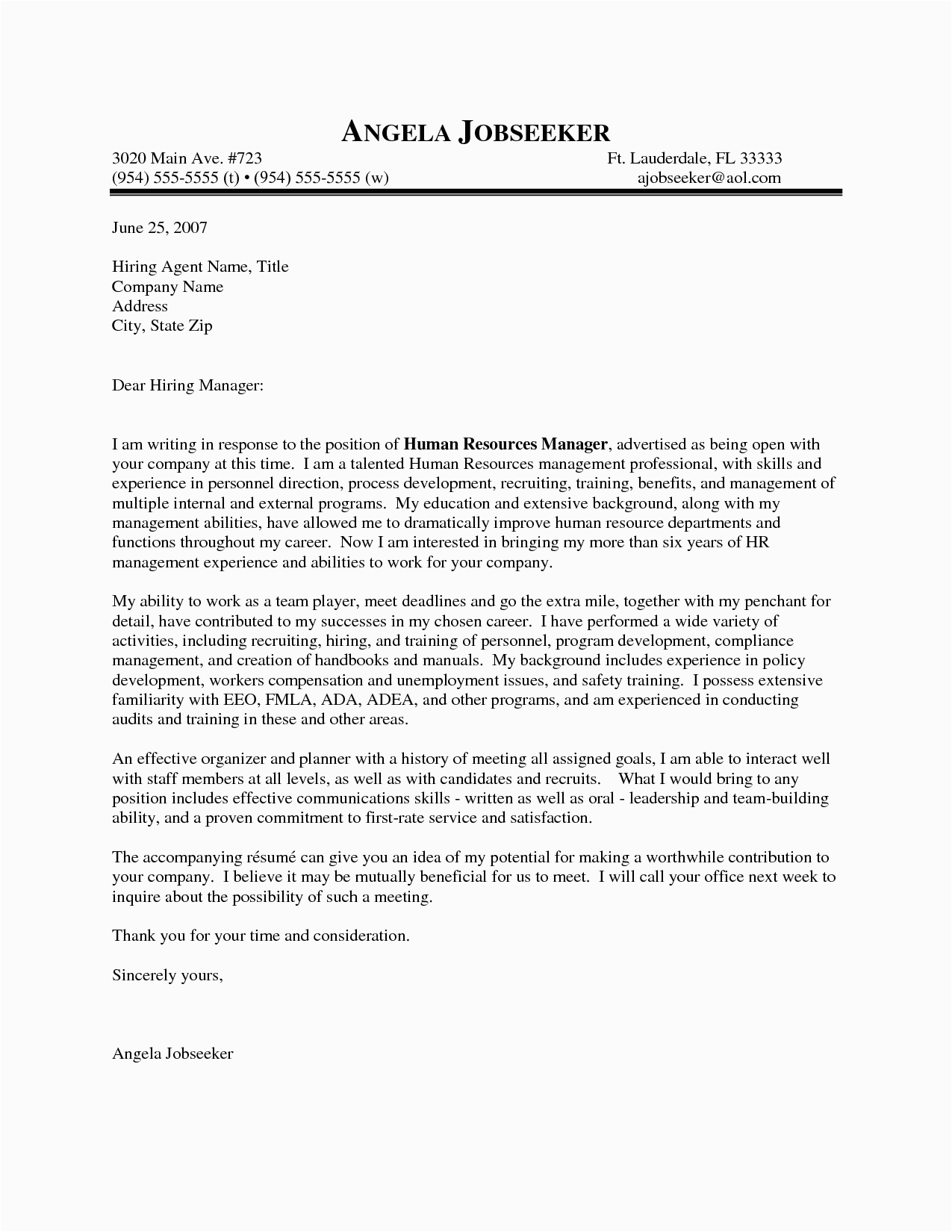 Sample Email To Hiring Manager