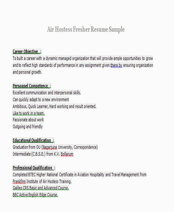 Next you are searching for the absolute job, you will of course desire to put your best foot adopt later an impressive and well-formatted resume. One habit of assuring that you have such a resume is to download a sample resume for air hostess fresher. These templates can allow you afterward the perfect resume you are looking for or handily use them as a guide to make your own.