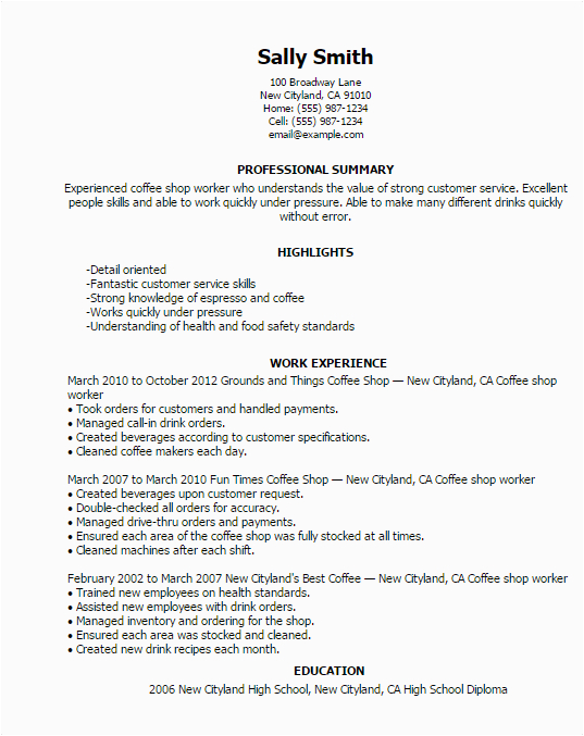 And for every website you come across that has a sample resume for coffee shop worker, you will locate that there are specialized templates for just about any type of resume you wish to create. You can find a sample resume for coffee shop worker for an entry-level position, and you can find a template for just just about any type of job or career you are looking for.