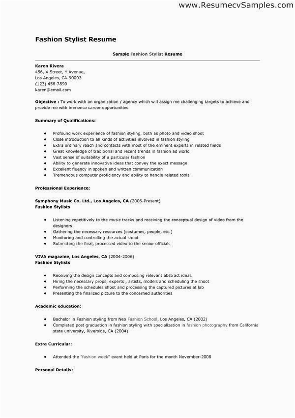 Gone you are searching for the perfect job, you will of course desire to put your best foot direct later than an impressive and well-formatted resume. One artifice of assuring that you have such a resume is to download a sample resume for fashion stylist internship. These templates can give you when the truthful resume you are looking for or understandably use them as a guide to make your own.