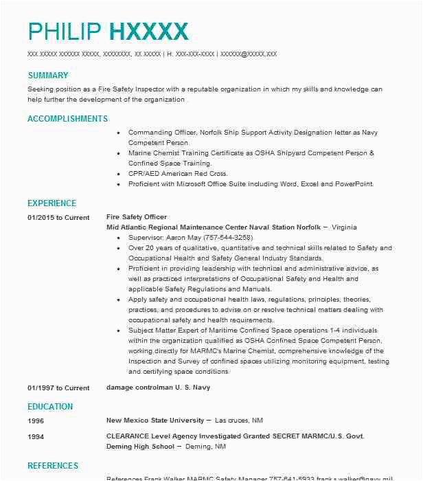 There will be many career books and guides that you can search out at the library or bookstore, which will have at least one sample resume for fire and safety officer fresher for you to study, oftentimes more.