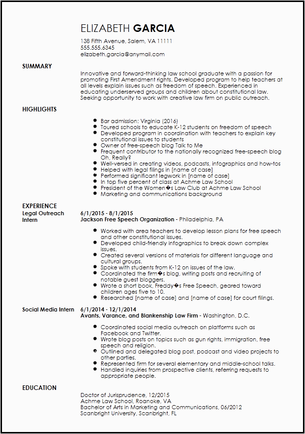 And for every website you come across that has a sample resume for internship in law firm, you will locate that there are specialized templates for just not quite any type of resume you wish to create. You can find a sample resume for internship in law firm for an entry-level position, and you can locate a template for just very nearly any type of job or career you are looking for.