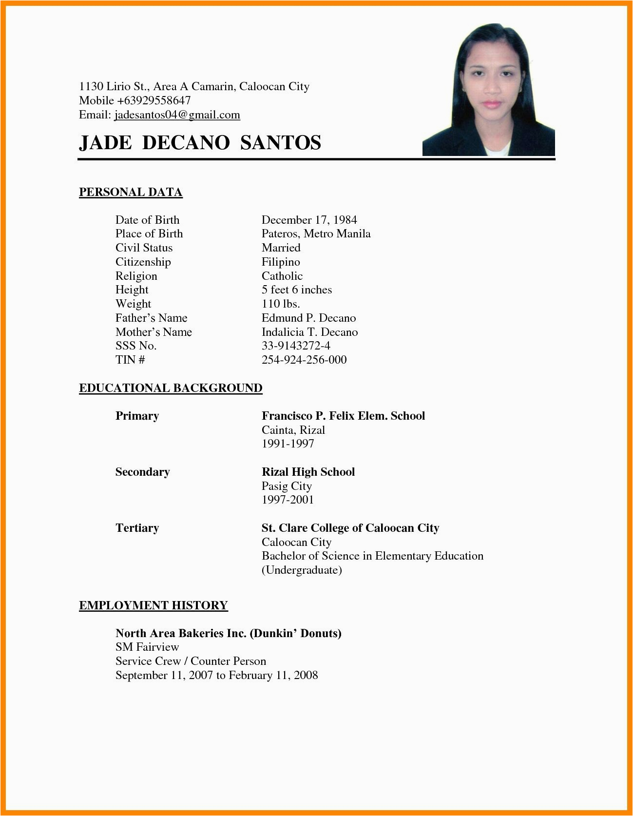 Sample Resume Format Applying Abroad