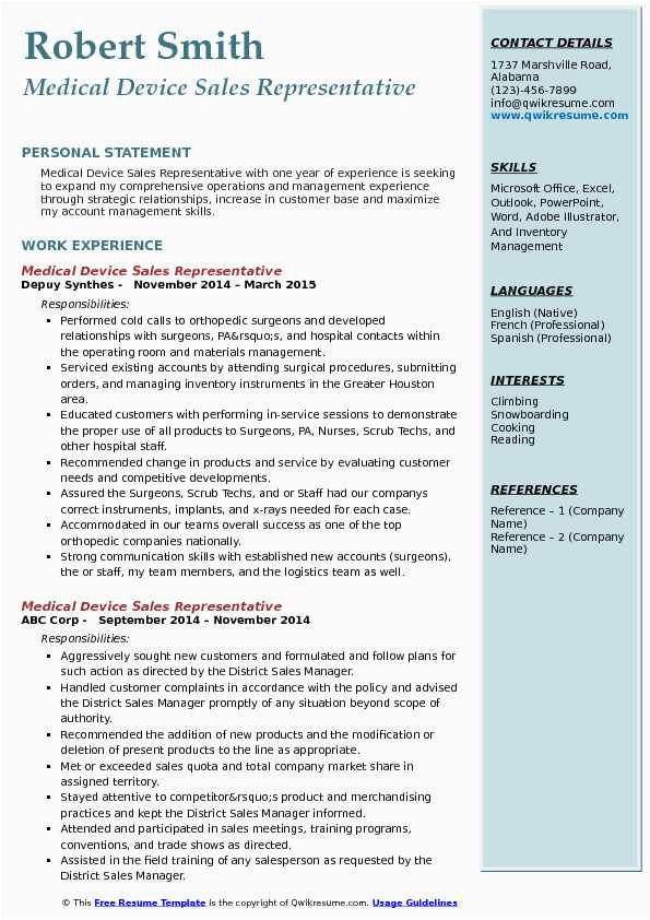 Medical Device Sales Representative Resume Samples