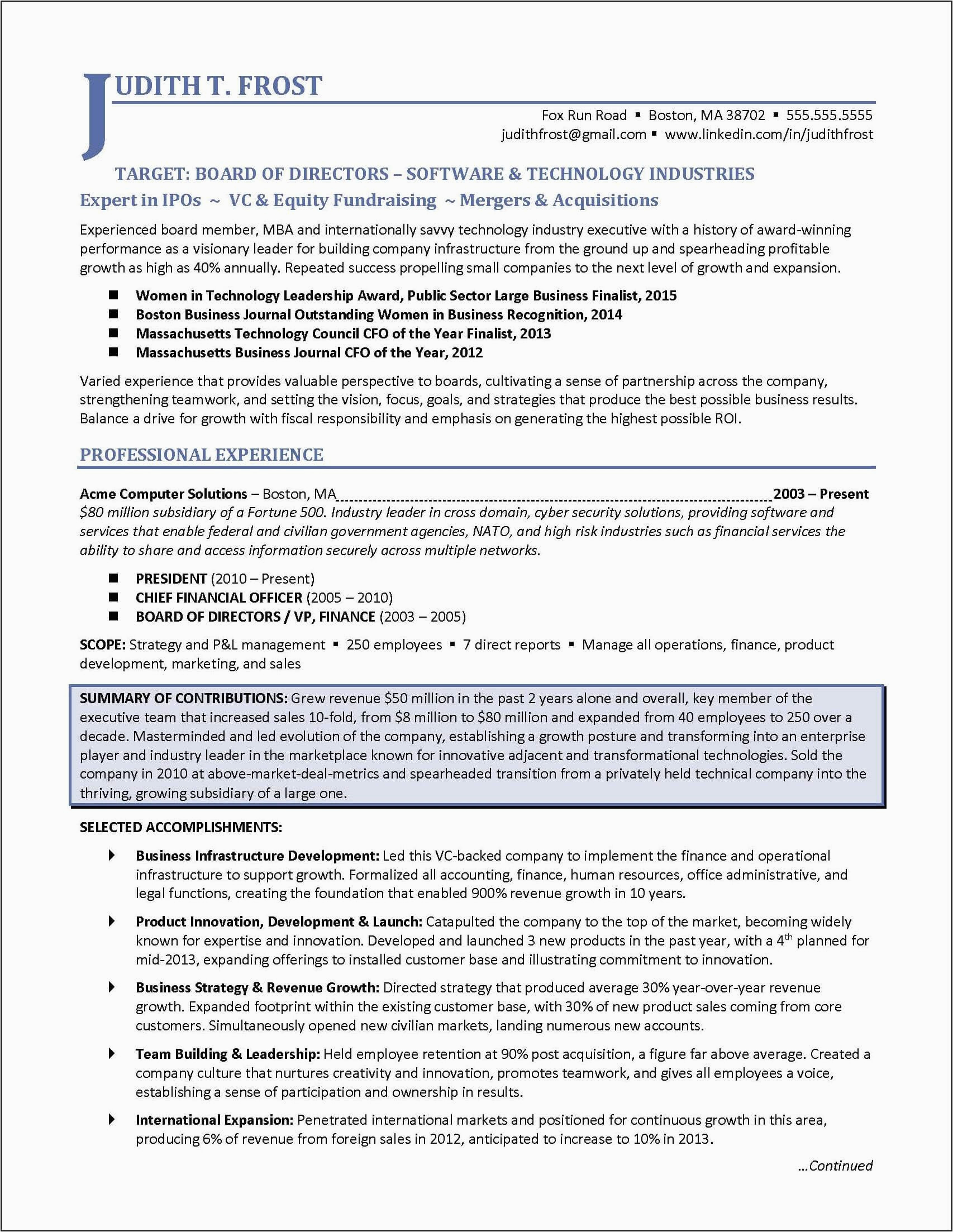 Sample Resume for Nonprofit Board Position Board Of Directors Resume Example for Corporate or