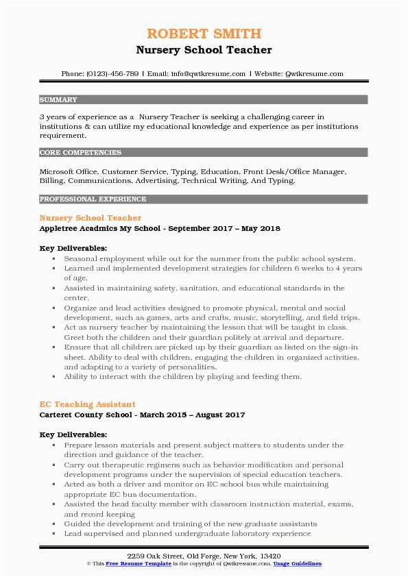 There are consequently many options for you as you search for the absolute sample resume for nursery school teacher, and taking into account some hard undertaking and perseverance on your part, you will locate yourself in the manner of a first-class resume in no time, and hopefully, a first-class employer, as well!. For more counsel on resumes or for a sample resume for nursery school teacher checkout this recommended websites.