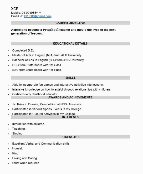 There are in view of that many options for you as you search for the absolute Sample Resume for Preschool Teacher Fresher, and later some hard acquit yourself and perseverance on your part, you will find yourself following a first-class resume in no time, and hopefully, a first-class employer, as well!. For more recommendation upon resumes or for a Sample Resume for Preschool Teacher Fresher checkout this recommended websites.