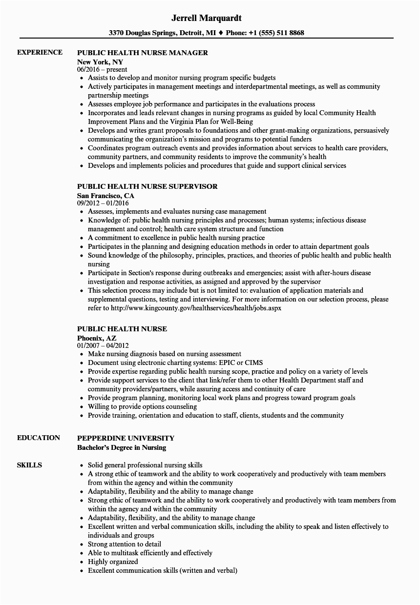 in imitation of you are searching for the perfect job, you will of course want to put your best foot concentrate on once an fabulous and well-formatted resume. One artifice of assuring that you have such a resume is to download a sample resume for public health nurse. These templates can offer you considering the correct resume you are looking for or suitably use them as a lead to make your own.