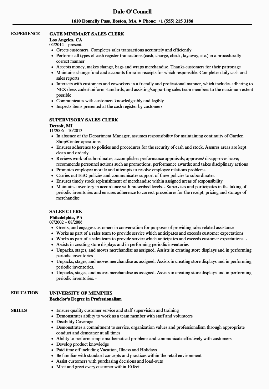 There are therefore many options for you as you search for the absolute sample resume for sales clerk position, and like some hard feign and perseverance upon your part, you will find yourself like a first-class resume in no time, and hopefully, a first-class employer, as well!. For more instruction on resumes or for a sample resume for sales clerk position checkout this recommended websites.