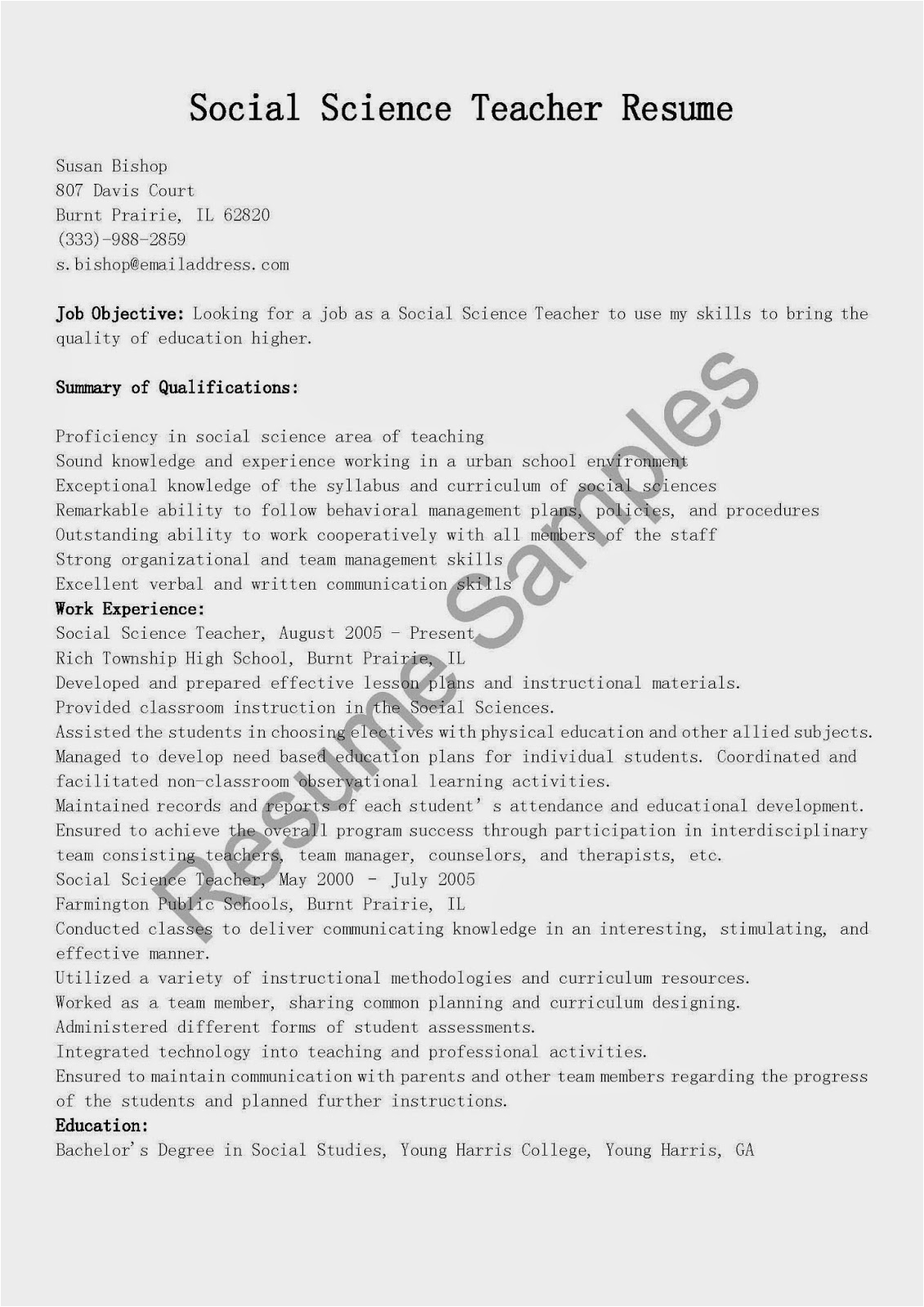 There are hence many options for you as you search for the perfect sample resume for social science teacher, and as soon as some difficult con and perseverance on your part, you will find yourself behind a first-class resume in no time, and hopefully, a first-class employer, as well!. For more guidance on resumes or for a sample resume for social science teacher checkout this recommended websites.
