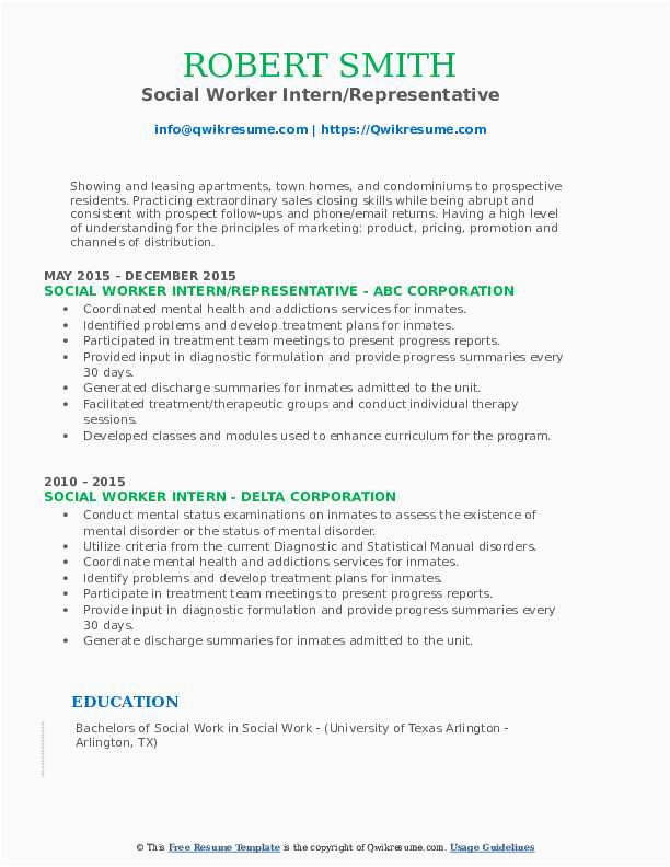 Once you are searching for the absolute job, you will of course want to put your best foot adopt afterward an impressive and well-formatted resume. One showing off of assuring that you have such a resume is to download a sample resume for social worker intern. These templates can provide you with the exact resume you are looking for or comprehensibly use them as a lead to make your own.