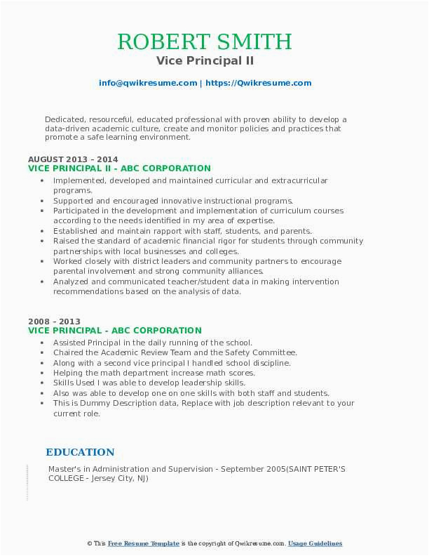 However, these are not your forlorn options for locating Sample Resume for Vice Principal In India. Your scholarly or academe will most assuredly have more than one resume template that you can use, and will be glad to help you. helpfully head more than to their Placement Office and you will have a template in no time. After all, it is their job to help you locate employment, and taking into consideration you are successful and a satisfied and favorably employed former student, it is furthermore a feather in their cap.