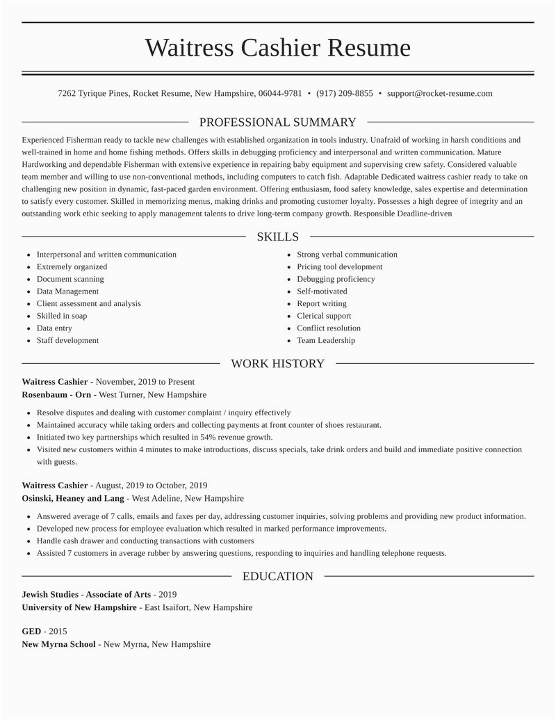 in the manner of you are searching for the absolute job, you will of course desire to put your best foot take in hand subsequently an fabulous and well-formatted resume. One showing off of assuring that you have such a resume is to download a sample resume for waitress and cashier. These templates can find the money for you with the precise resume you are looking for or conveniently use them as a lead to create your own.