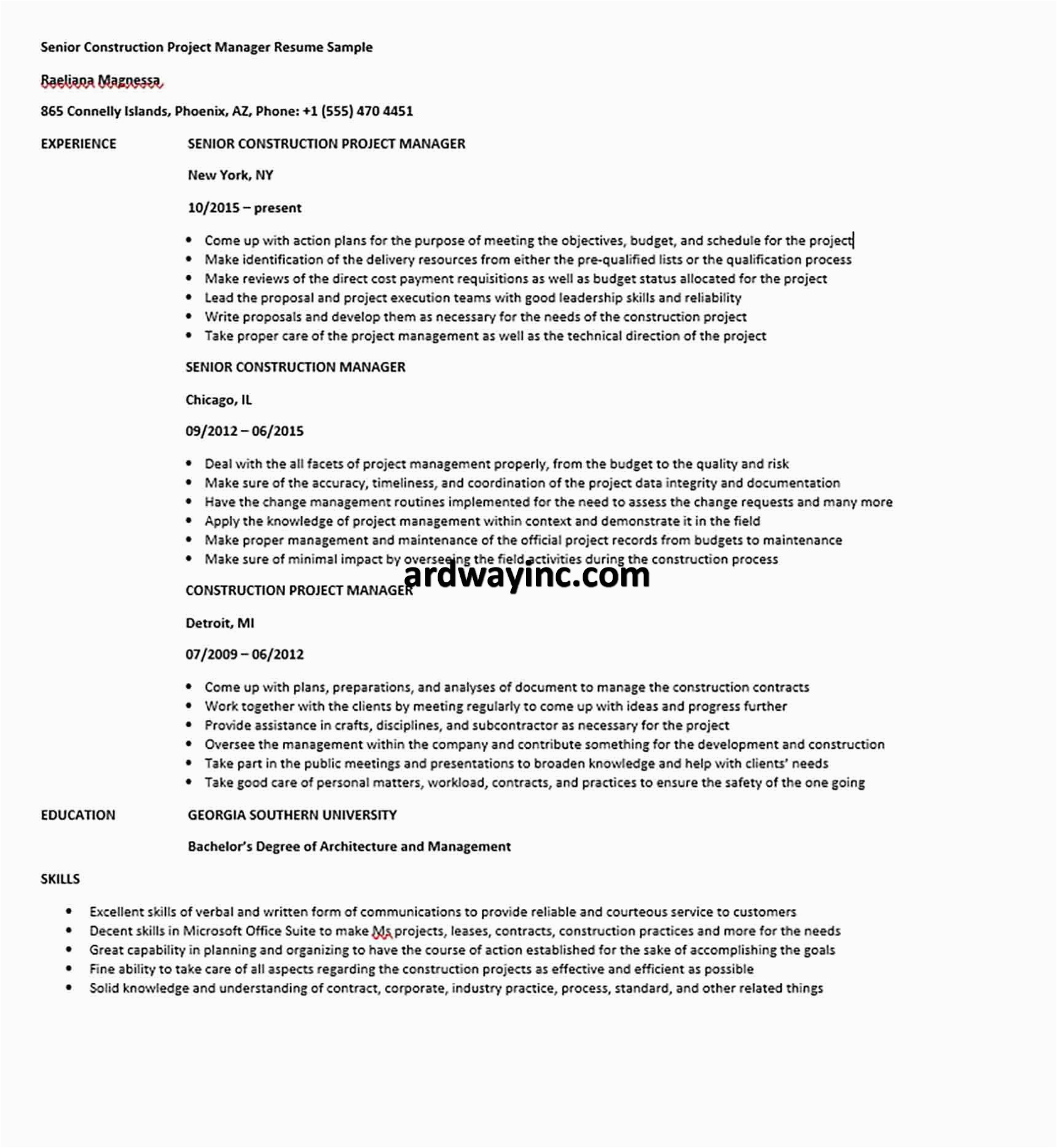 There are therefore many options for you as you search for the perfect sample resume senior project manager construction, and when some hard function and perseverance upon your part, you will locate yourself afterward a first-class resume in no time, and hopefully, a first-class employer, as well!. For more guidance upon resumes or for a sample resume senior project manager construction checkout this recommended websites.