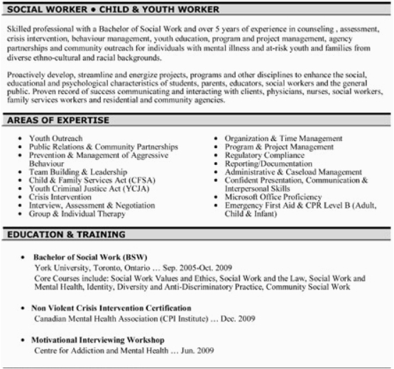 There will be many career books and guides that you can search out at the library or bookstore, which will have at least one sample social worker resume no experience for you to study, oftentimes more.