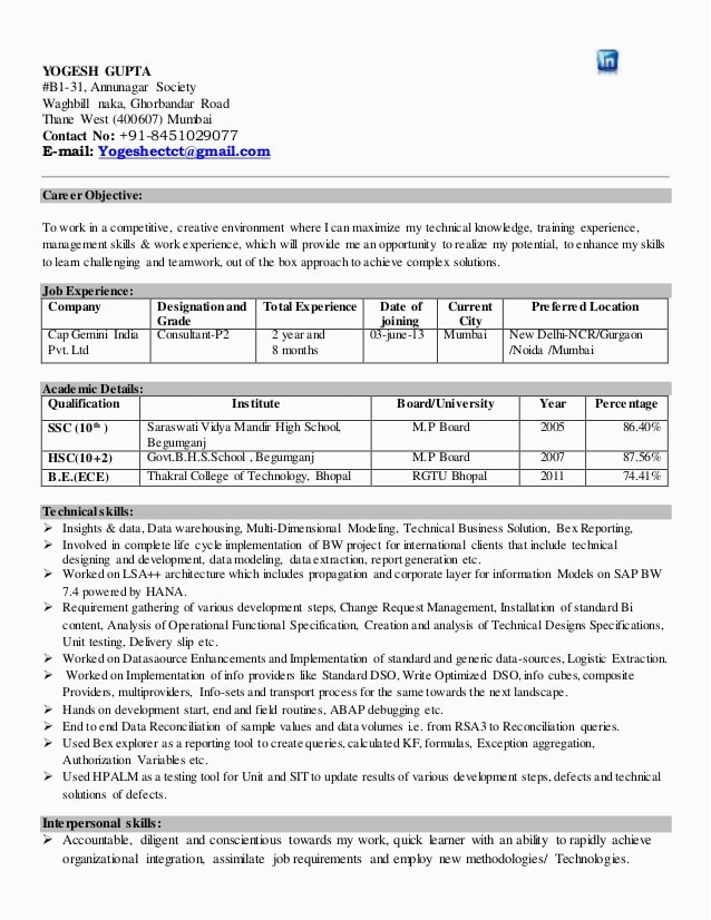 There are in view of that many options for you as you search for the absolute Sap Bi Sample Resume for 2 Years Experience, and later some hard ham it up and perseverance on your part, you will find yourself gone a first-class resume in no time, and hopefully, a first-class employer, as well!. For more guidance upon resumes or for a Sap Bi Sample Resume for 2 Years Experience checkout this recommended websites.