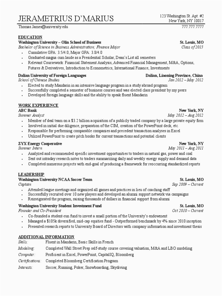 Investment Banking Resume Template What You Must Include