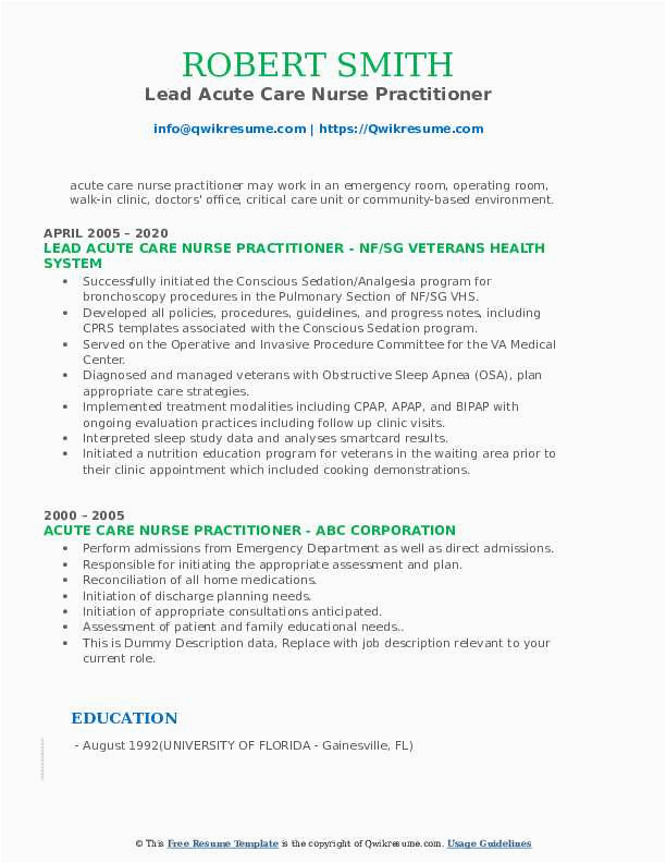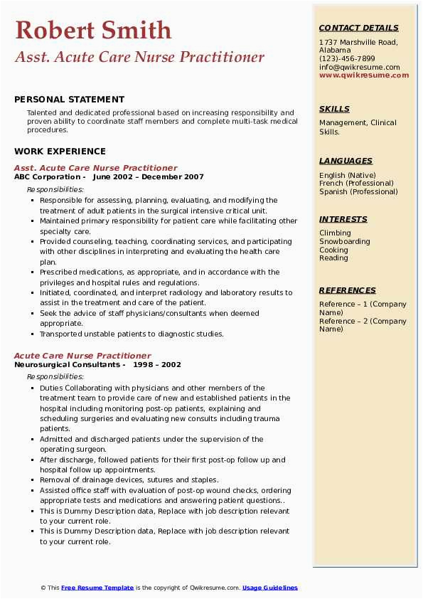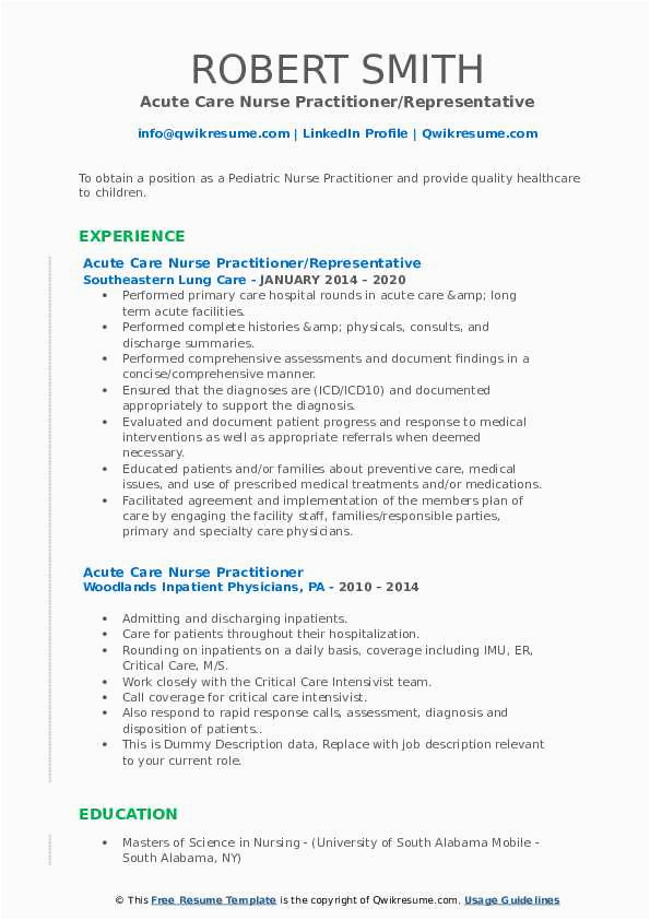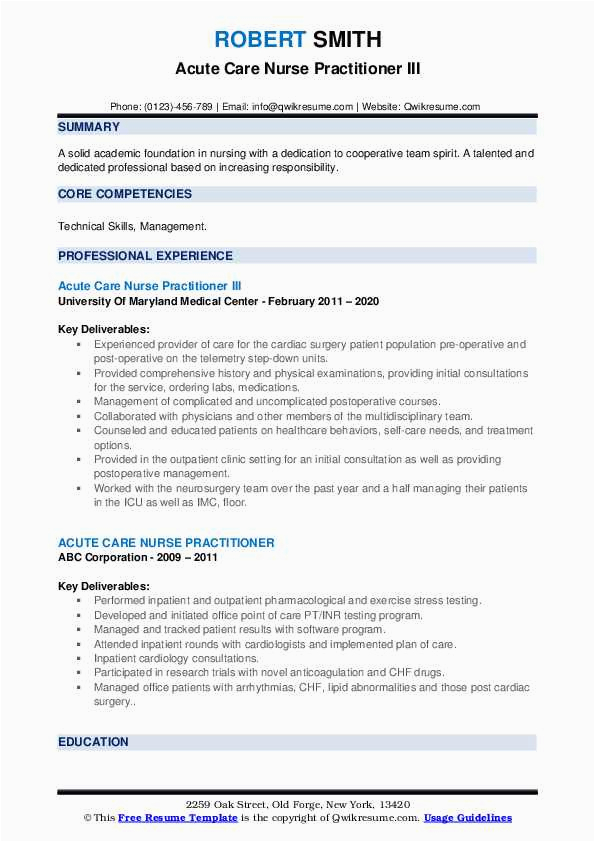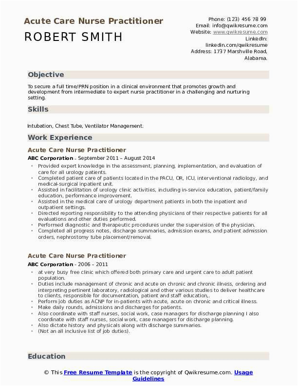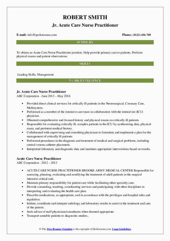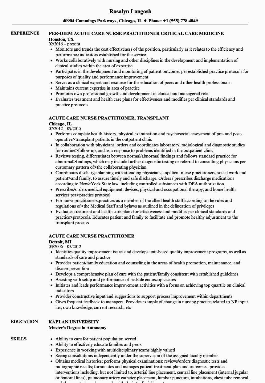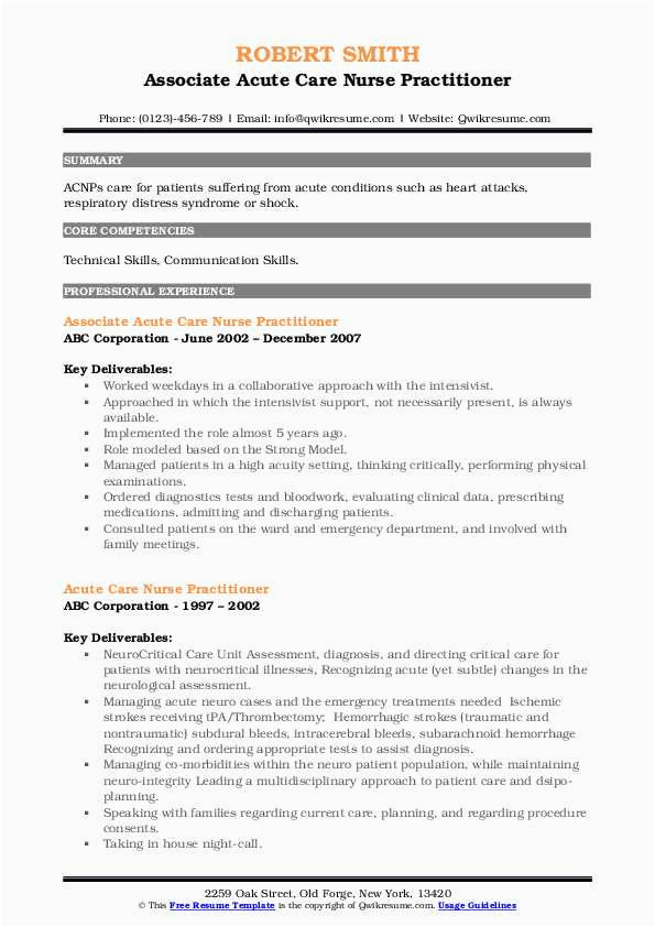 9 photos of the Acute Care Nurse Practitioner Resume Sample