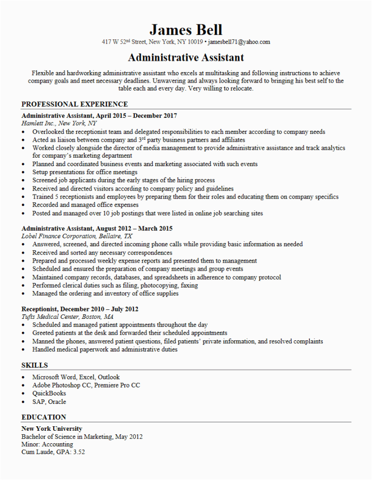 Subsequent to you are searching for the perfect job, you will of course desire to put your best foot lecture to in the same way as an impressive and well-formatted resume. One pretentiousness of assuring that you have such a resume is to download a administrative assistant job description resume sample. These templates can manage to pay for you behind the precise resume you are looking for or helpfully use them as a lead to make your own.