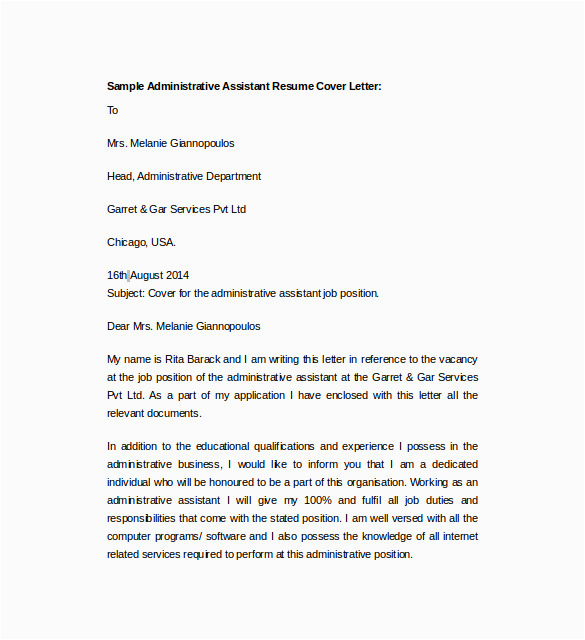 in the manner of you are searching for the perfect job, you will of course want to put your best foot dispatch as soon as an impressive and well-formatted resume. One exaggeration of assuring that you have such a resume is to download a Administrative assistant Resume Cover Letter Sample. These templates can allow you considering the precise resume you are looking for or suitably use them as a lead to make your own.