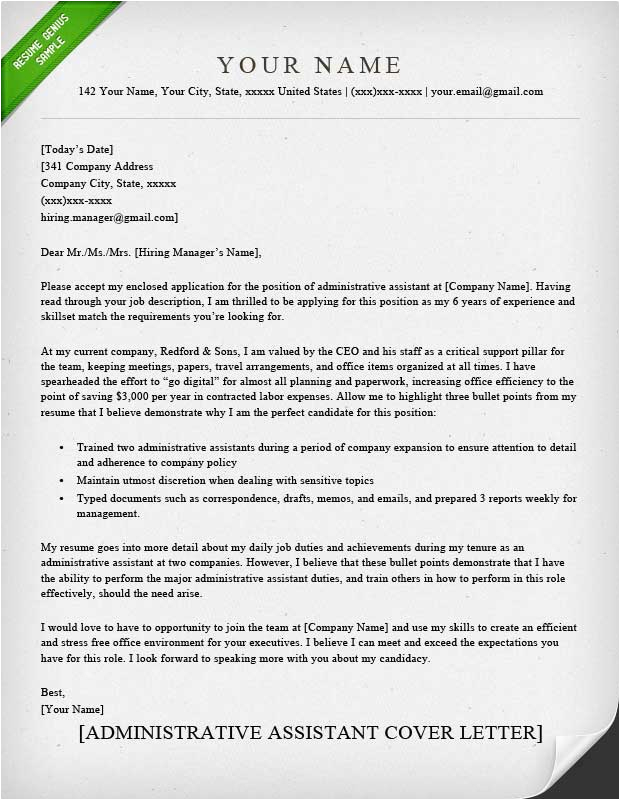 Do you have a friend or relative who has a job you respect and a fine grasp of how to format and create a resume? Why not ask them to look the resume that they used, and use that for your Administrative assistant Sample Cover Letter for Resume?