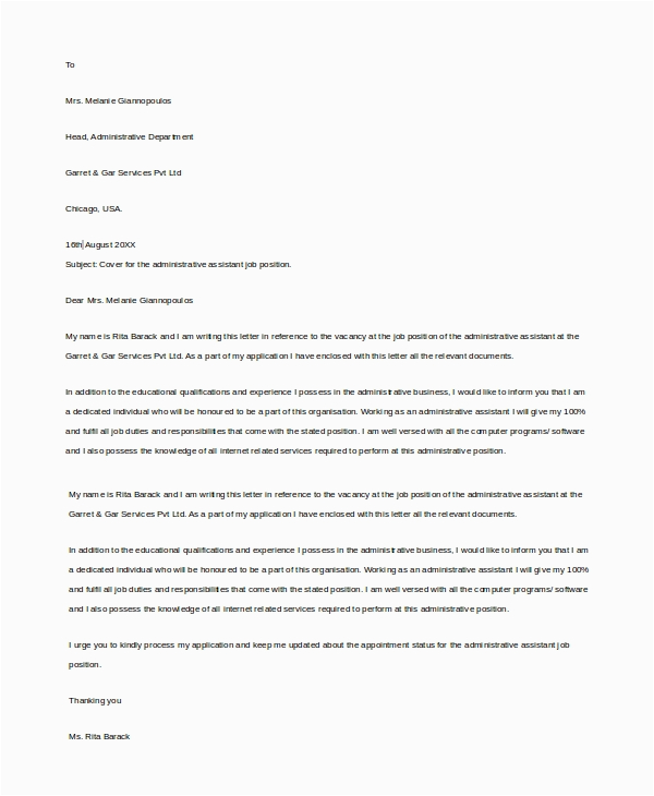 You can get several stand-in ideas and examples of how to format your resume in the same way as the urge on of a Administrative assistant Sample Cover Letter for Resume, and if you pick to utilize this method, there are as well as many ways to go nearly comport yourself so.