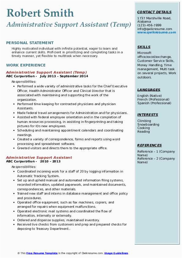 9 photos of the Administrative Support assistant Federal Resume Sample