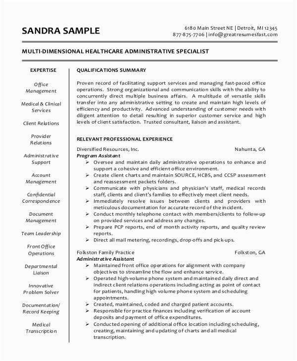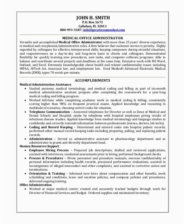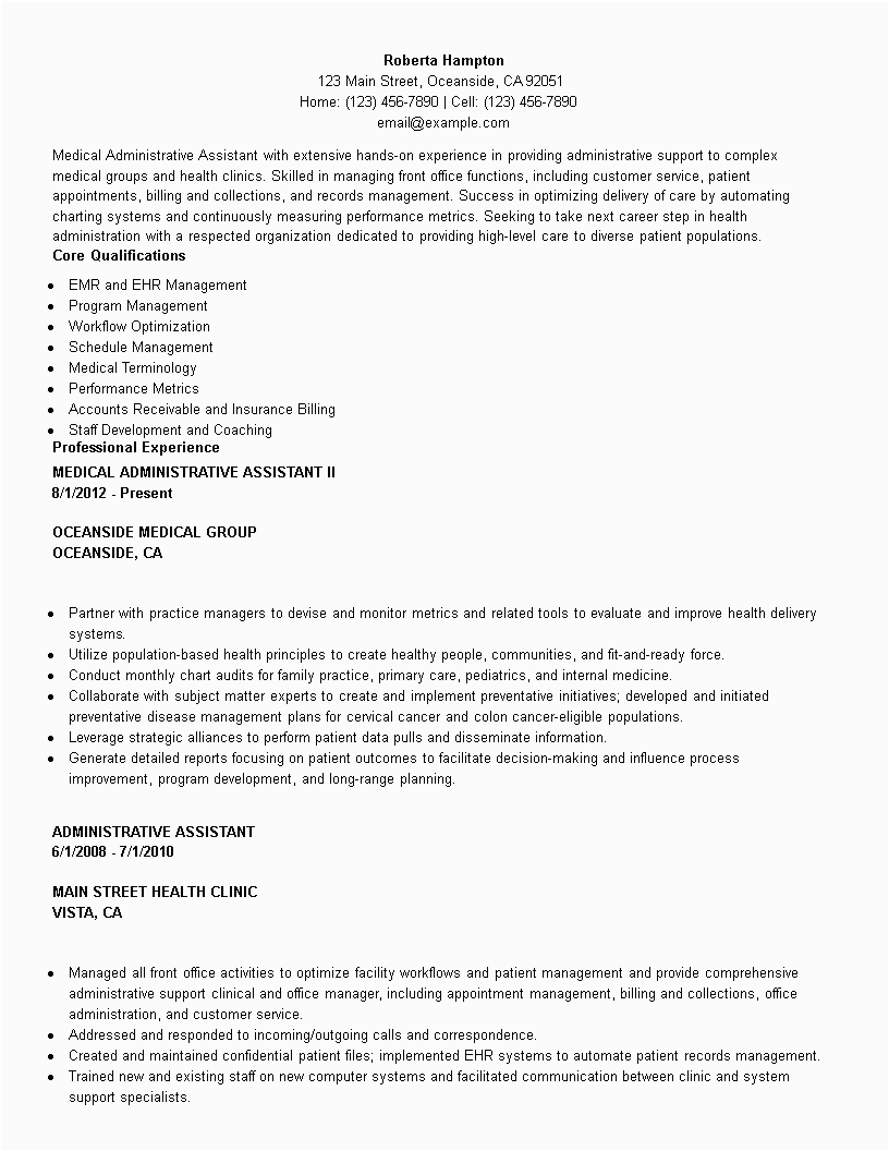 Back To Adminstrative assistance In Medical Office Sample Resume