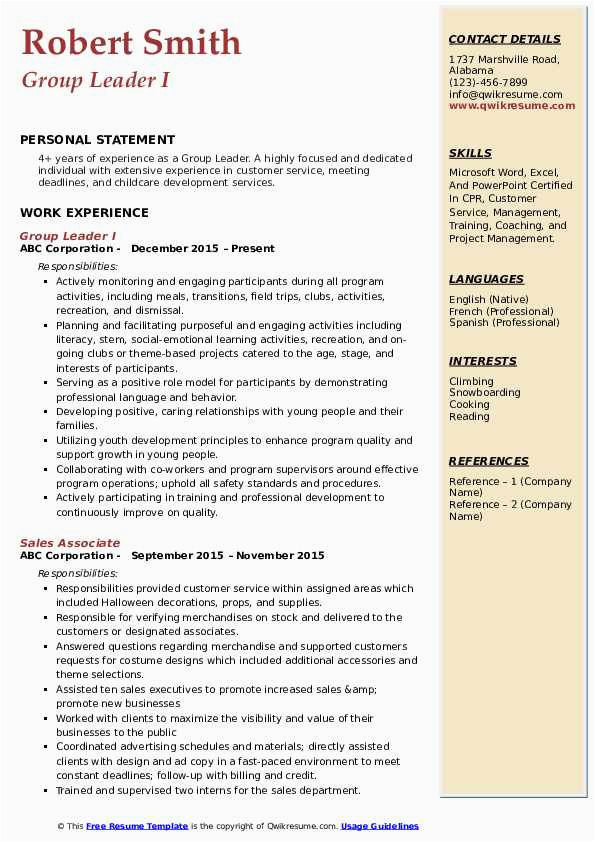 9 photos of the After School Group Leader Sample Resume