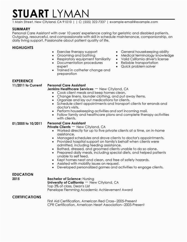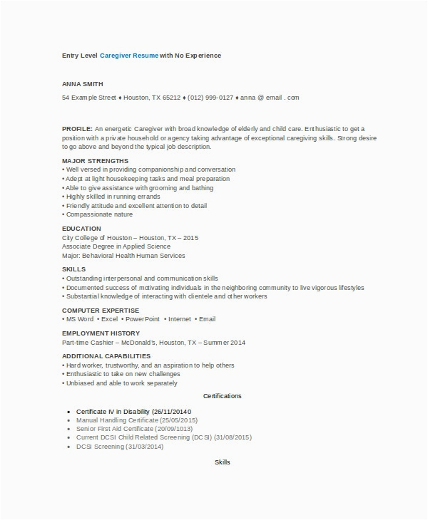 Caregiver Resume No Experience New Caregiver Resume Sample
