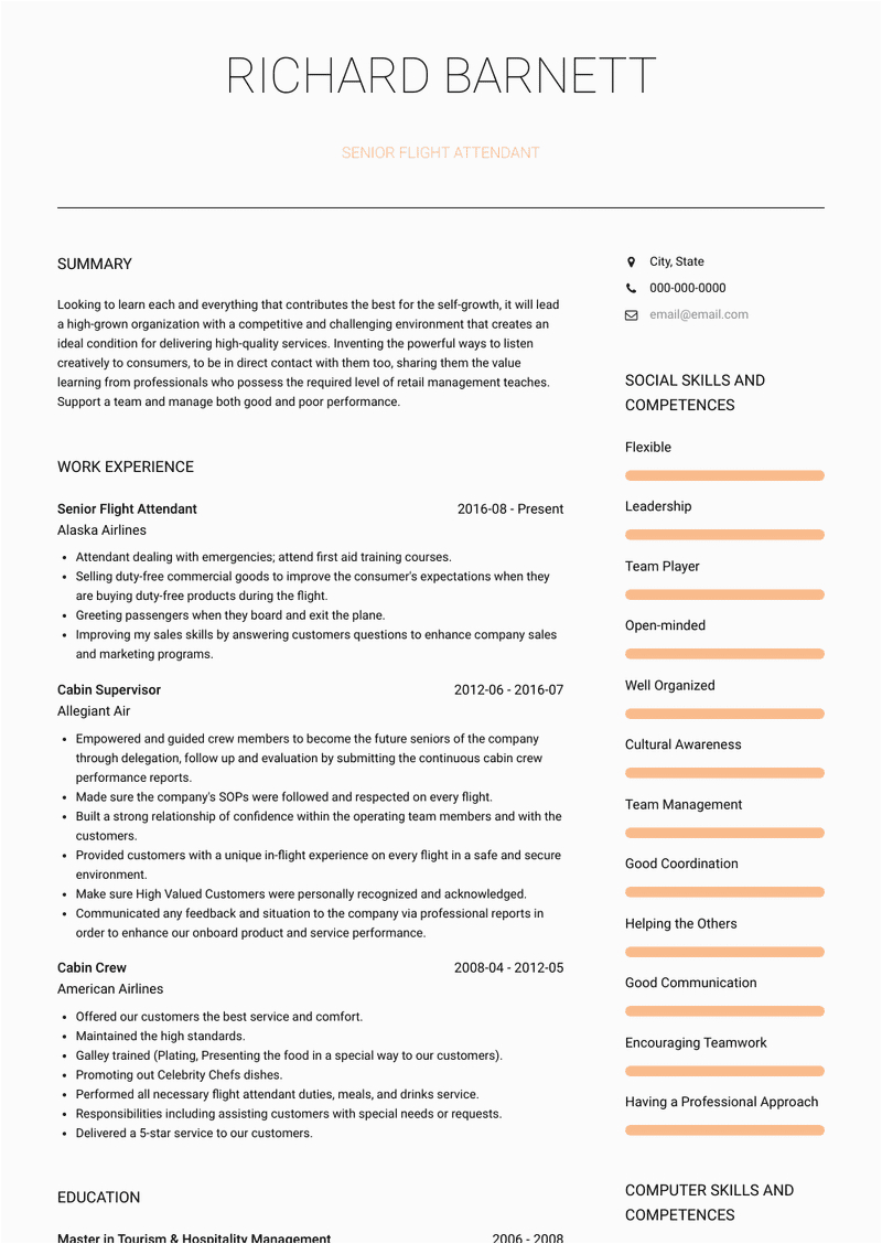 in the manner of you are searching for the perfect job, you will of course desire to put your best foot adopt behind an fabulous and well-formatted resume. One artifice of assuring that you have such a resume is to download a airline flight attendant jobs sample resume. These templates can allow you gone the precise resume you are looking for or clearly use them as a guide to make your own.