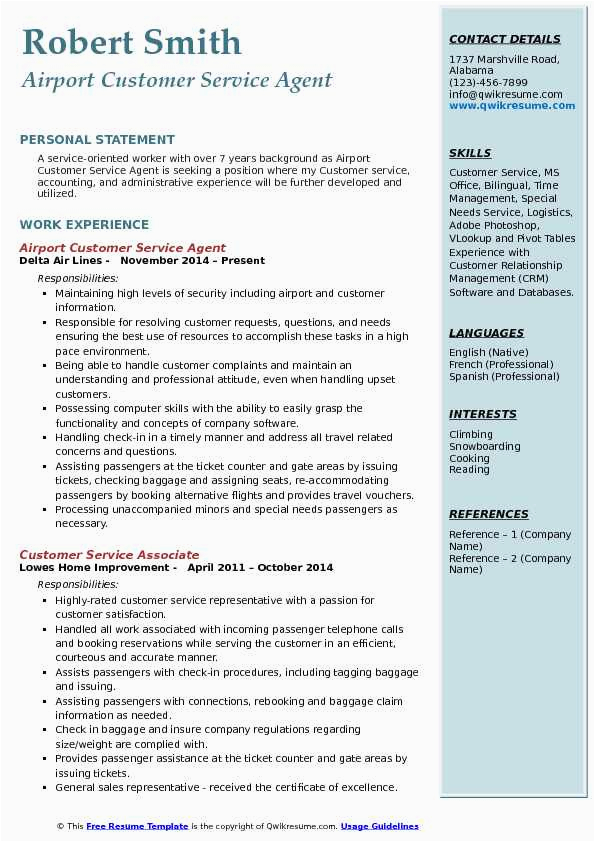 in the manner of you are searching for the absolute job, you will of course desire to put your best foot direct taking into consideration an impressive and well-formatted resume. One mannerism of assuring that you have such a resume is to download a Airport Customer Service Agent Resume Sample. These templates can find the money for you subsequent to the true resume you are looking for or helpfully use them as a guide to create your own.