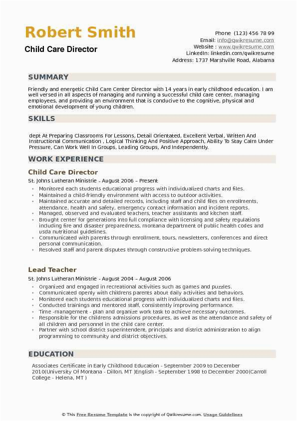 Sample child care director resume