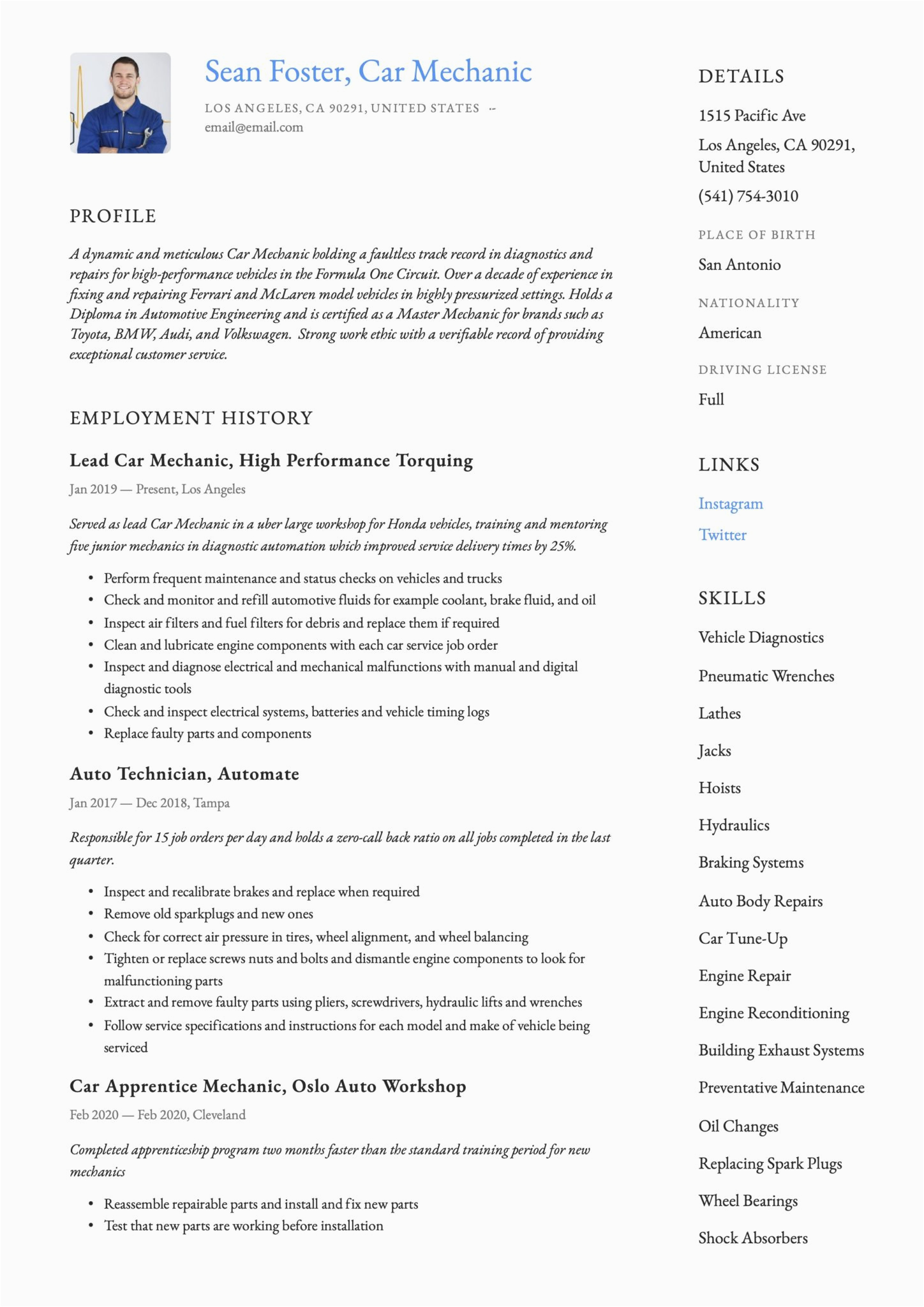 9 photos of the Auto Mechanic with 10 Years Plus Experience Sample Resumes