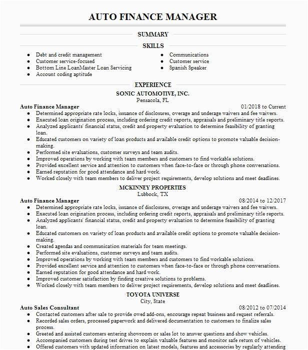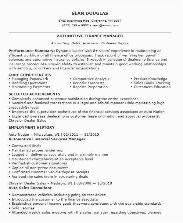 9 photos of the Automotive Financial Services Manager Resume Sample