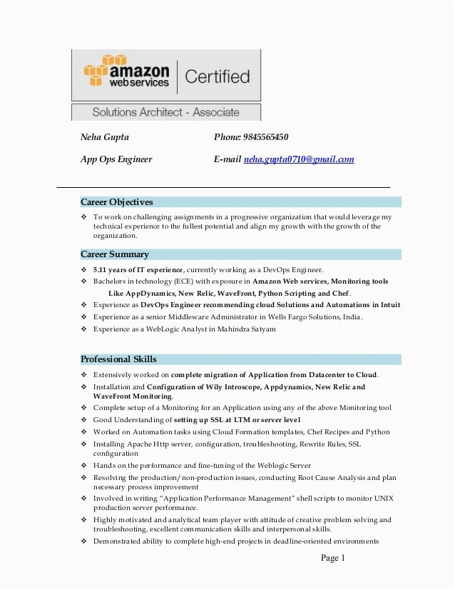 And for all website you arrive across that has a Aws Sample Resume for 2 Years Experience, you will locate that there are specialized templates for just nearly any type of resume you wish to create. You can locate a Aws Sample Resume for 2 Years Experience for an entry-level position, and you can locate a template for just just about any type of job or career you are looking for.
