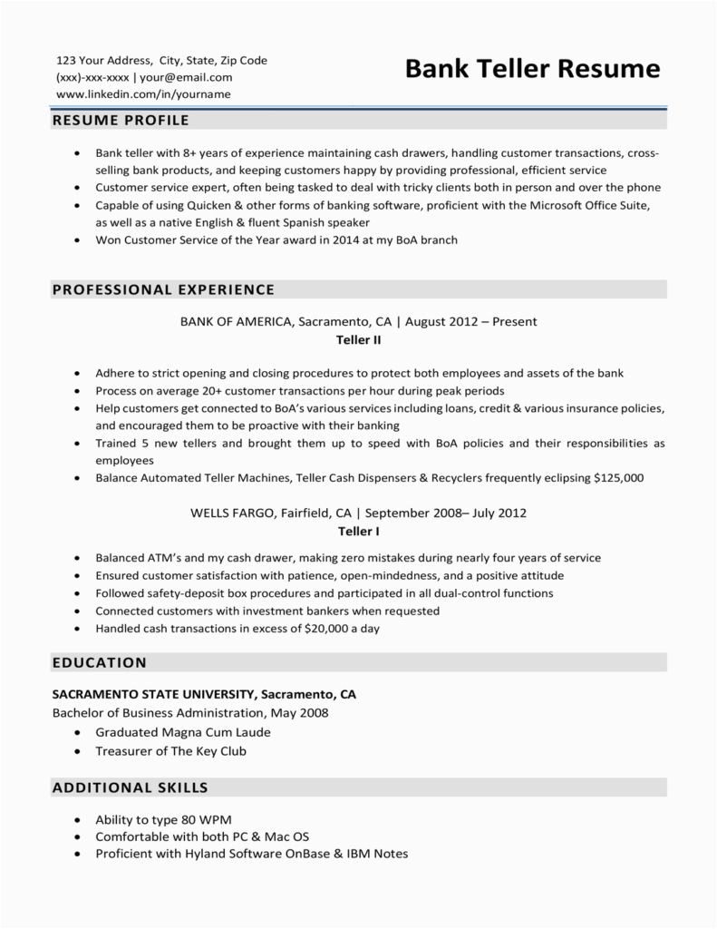 Sample Resume For Bank Teller Position No Experience