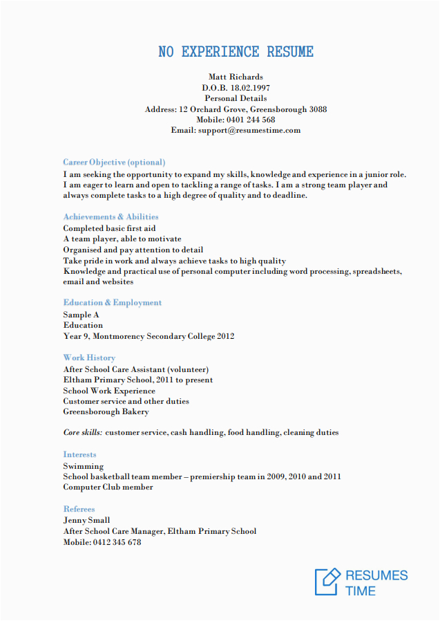 Best Resume Template For No Work Experience • Invitation