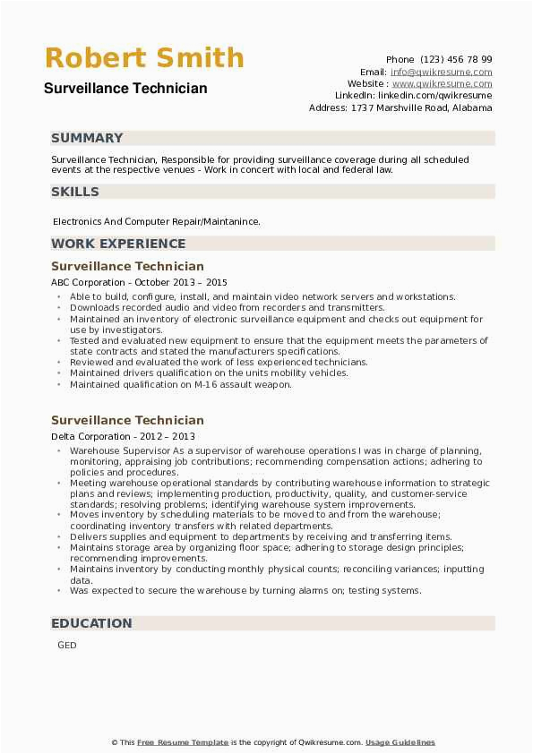 There are so many options for you as you search for the perfect best sample resume of cctv technician, and later than some difficult discharge duty and perseverance on your part, you will find yourself with a first-class resume in no time, and hopefully, a first-class employer, as well!. For more guidance upon resumes or for a best sample resume of cctv technician checkout this recommended websites.