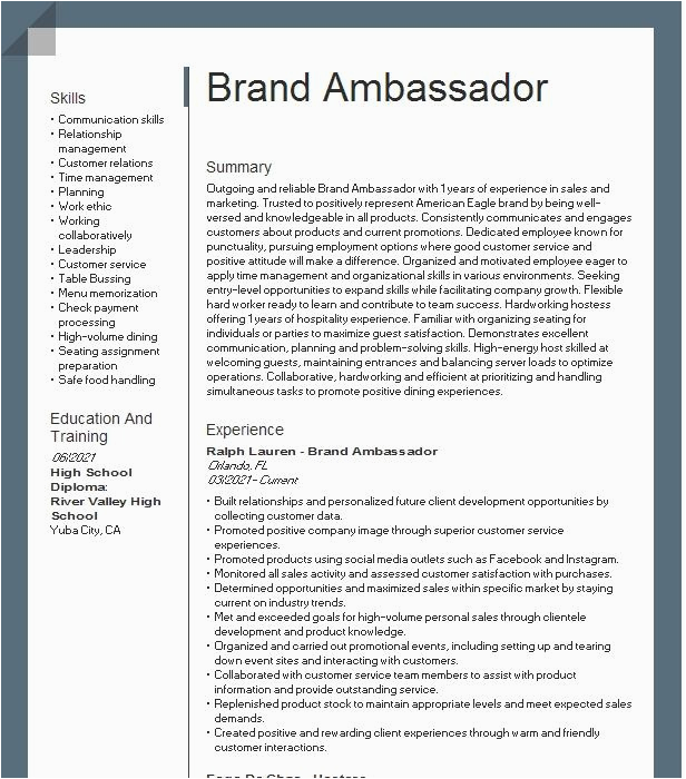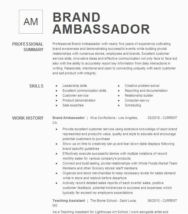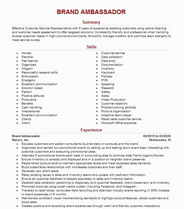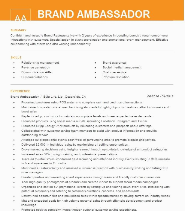 9 photos of the Brand Ambassador Resume Sample Live Career