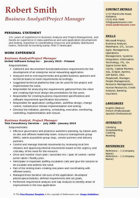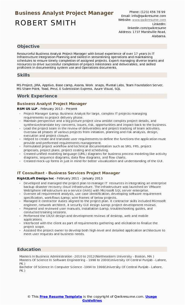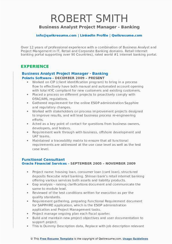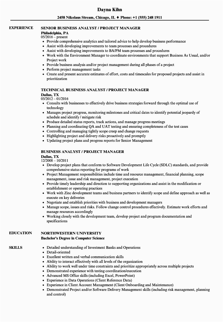 Considering you are searching for the perfect job, you will of course desire to put your best foot direct following an impressive and well-formatted resume. One pretension of assuring that you have such a resume is to download a business analyst project manager resume sample. These templates can offer you taking into account the true resume you are looking for or conveniently use them as a lead to create your own.
