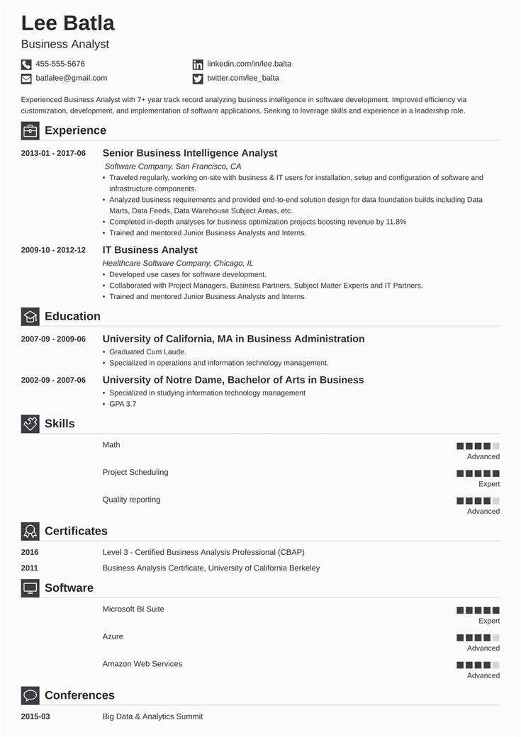business analyst resume template iconic