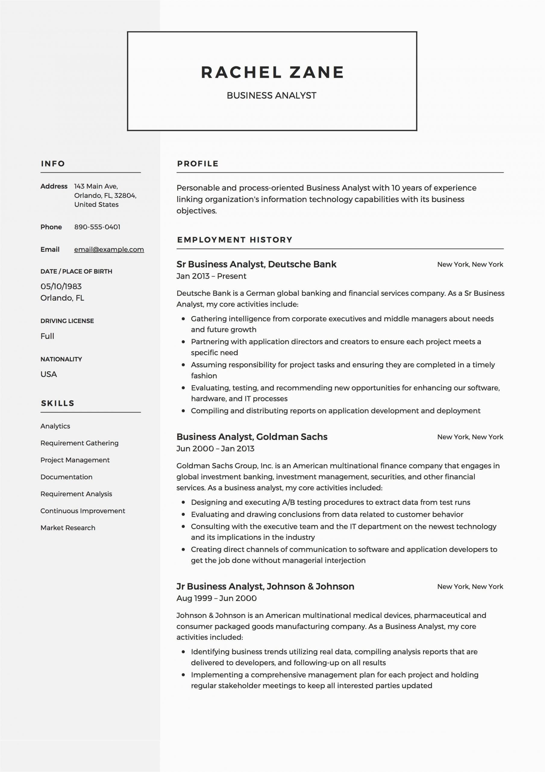 Business Analyst Resume Templates Free Download downloads can be a lifesaver in the manner of you look how long-suffering they can be. The assistance of using them are numerous. They keep time, have enough money good formatting, presentation, and can encourage you spread around yourself professionally. The idea of promotion is creating a lasting impression. Your resume markets you!