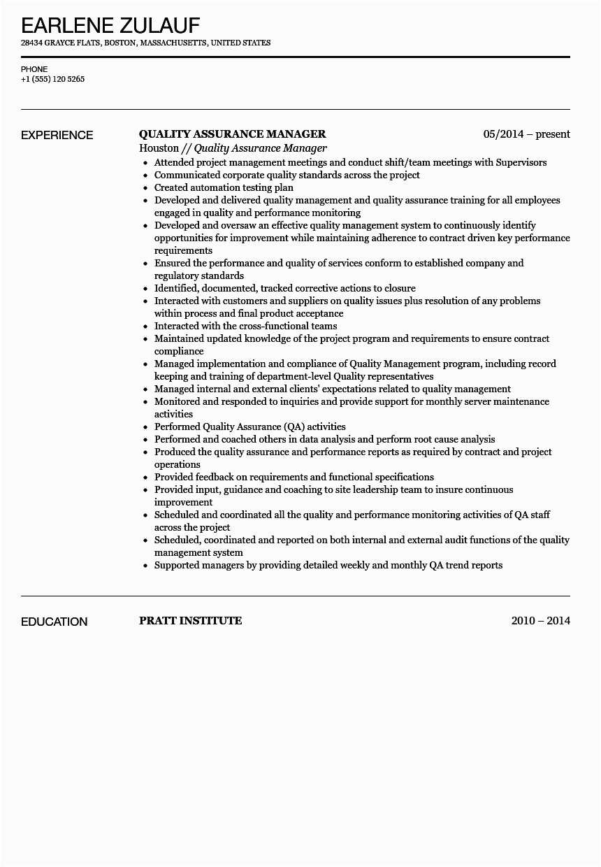 Quality Assurance Manager Resume Sample