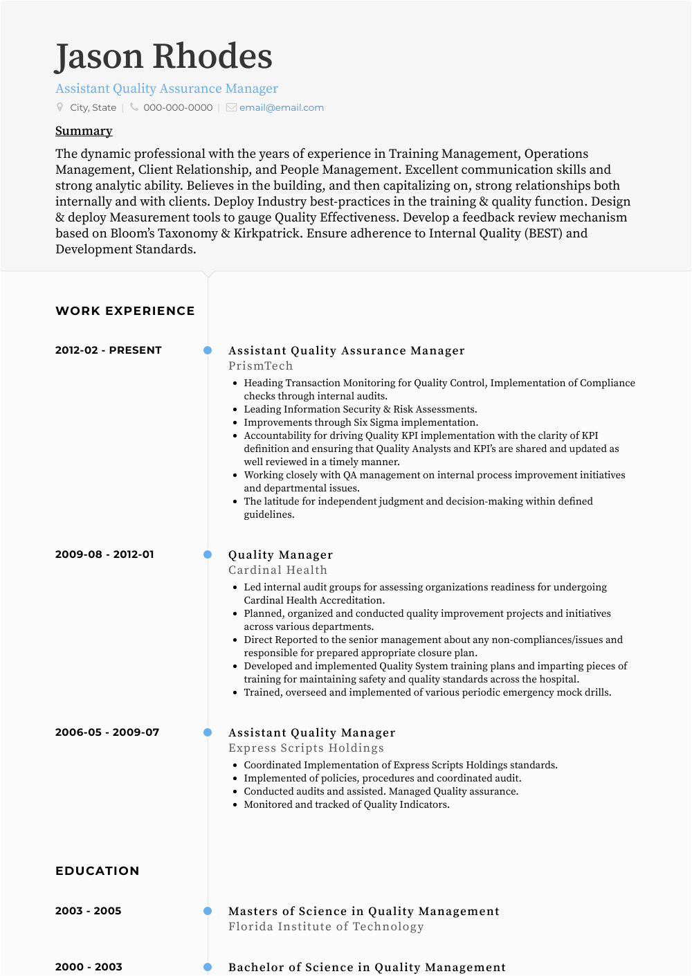 Quality Assurance Manager Resume Samples and Templates